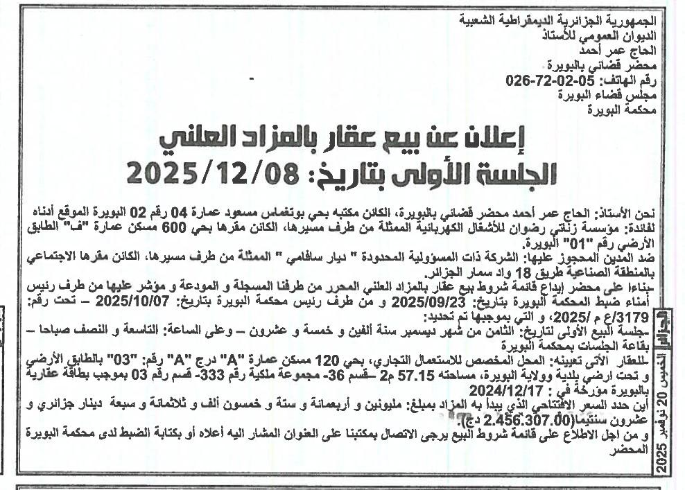Il sera procédé à la vente au plus offrant et dernier enchérisseur le :