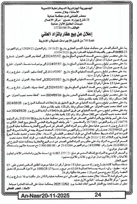 Il sera procédé à la vente au plus offrant et dernier enchérisseur le :