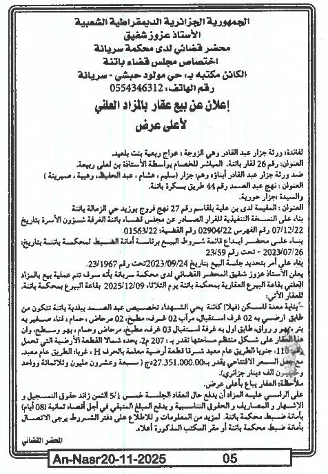 Il sera procédé à la vente au plus offrant et dernier enchérisseur le :