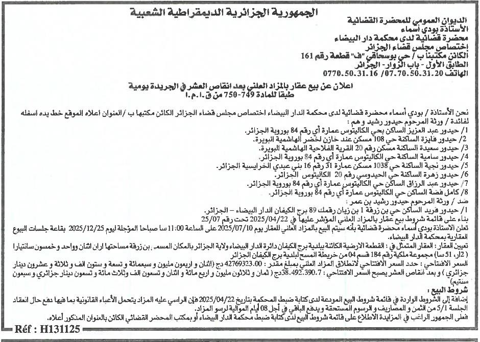 Il sera procédé à la vente au plus offrant et dernier enchérisseur le :