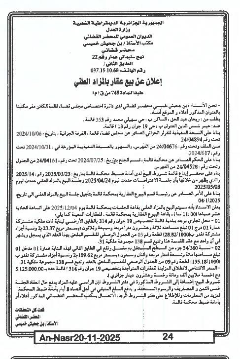 Il sera procédé à la vente au plus offrant et dernier enchérisseur le :
