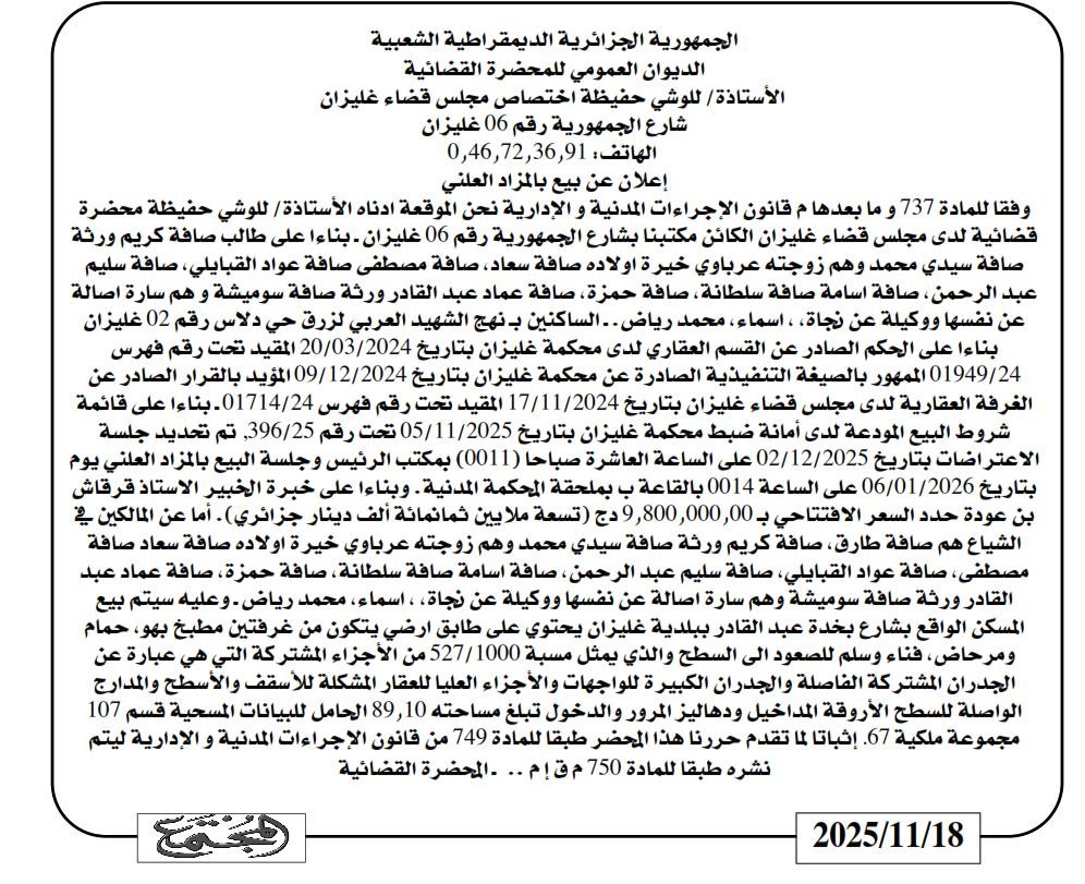 Il sera procédé à la vente au plus offrant et dernier enchérisseur le :