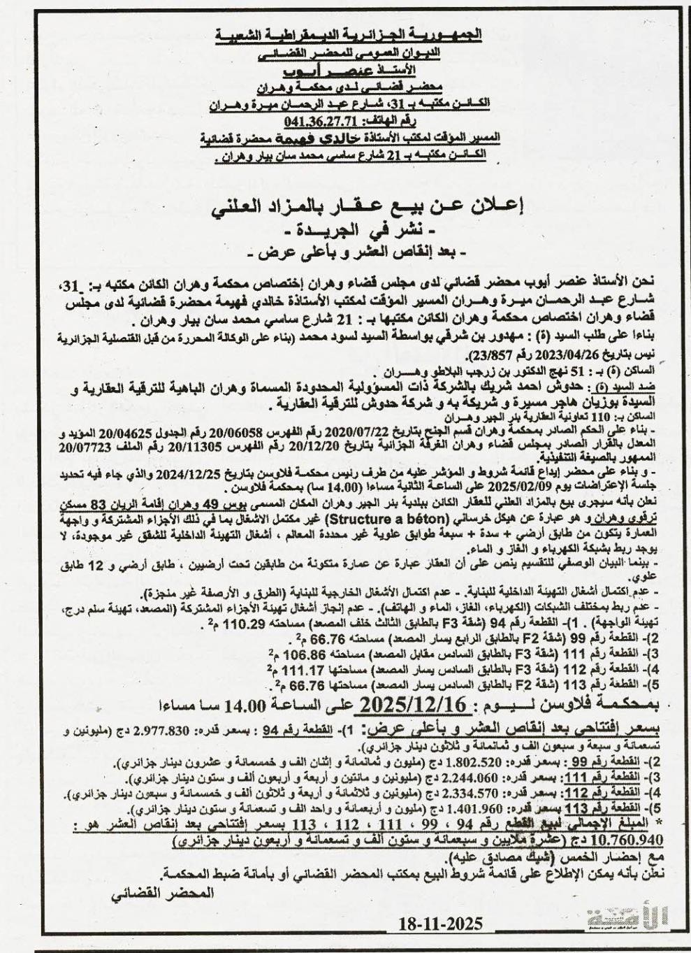 Il sera procédé à la vente au plus offrant et dernier enchérisseur le :