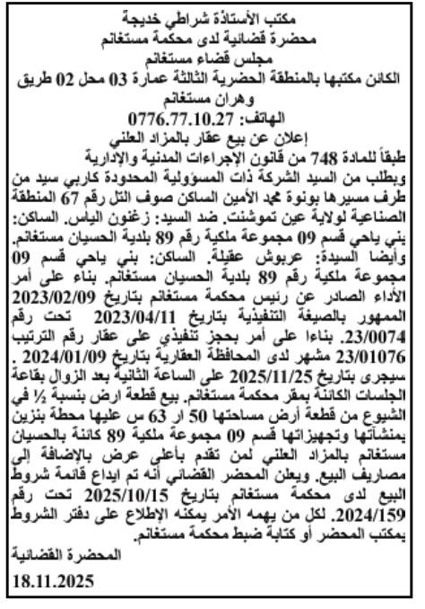 Il sera procédé à la vente au plus offrant et dernier enchérisseur le :