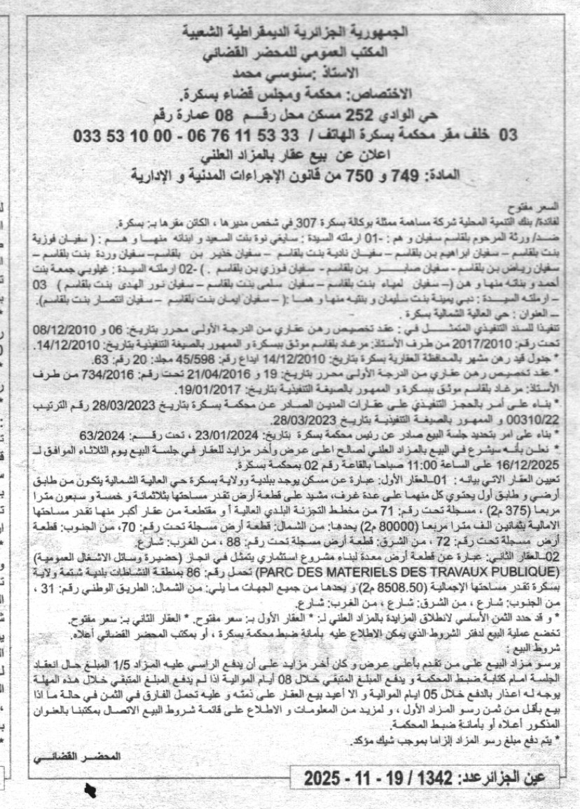 Il sera procédé à la vente au plus offrant et dernier enchérisseur le :