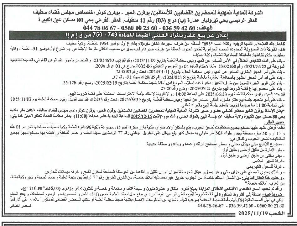 Il sera procédé à la vente au plus offrant et dernier enchérisseur le :