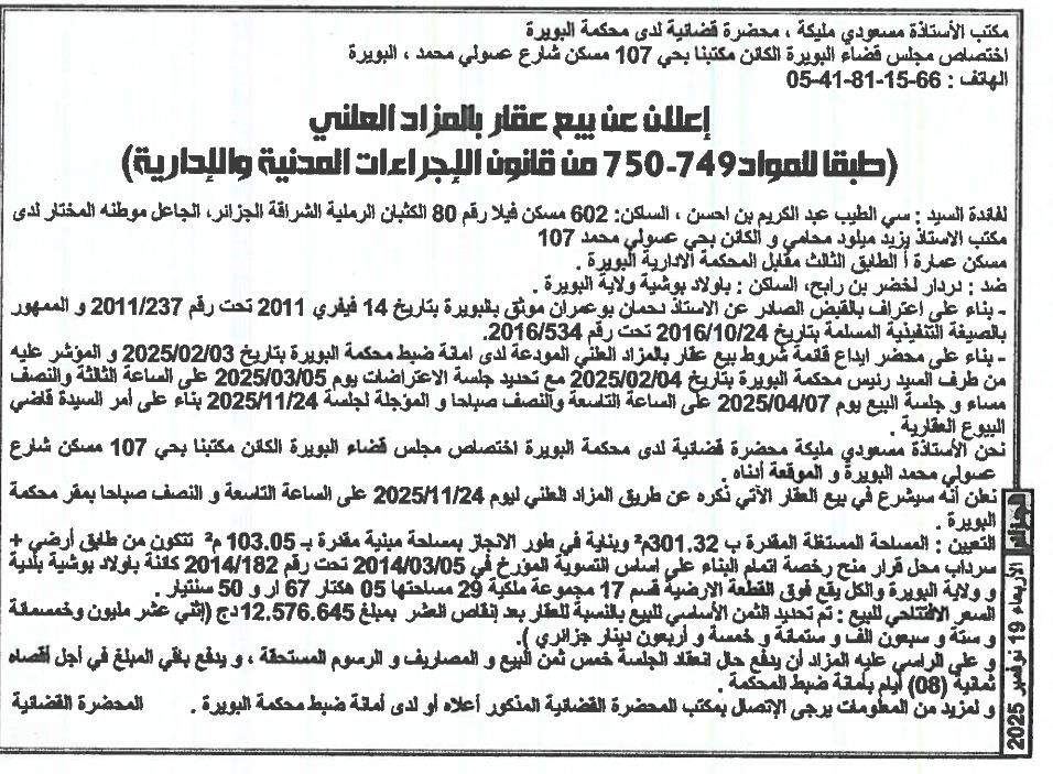 Il sera procédé à la vente au plus offrant et dernier enchérisseur le :
