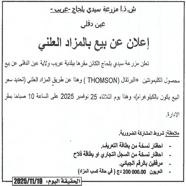 Il sera procédé à la vente au plus offrant et dernier enchérisseur le :