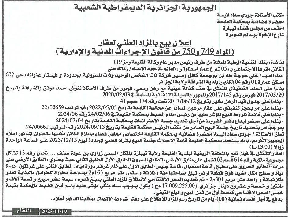 Il sera procédé à la vente au plus offrant et dernier enchérisseur le :