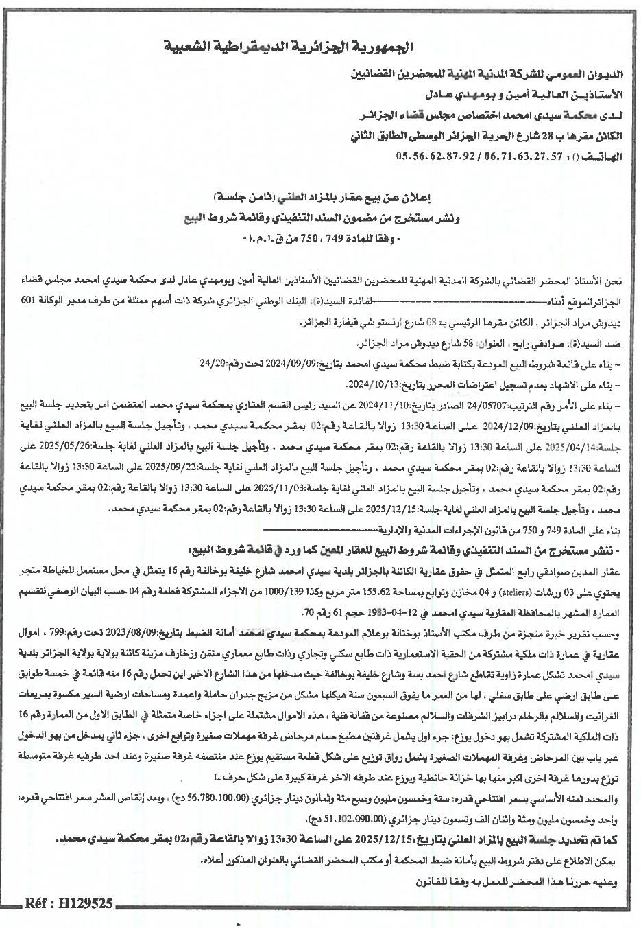 Il sera procédé à la vente au plus offrant et dernier enchérisseur le :