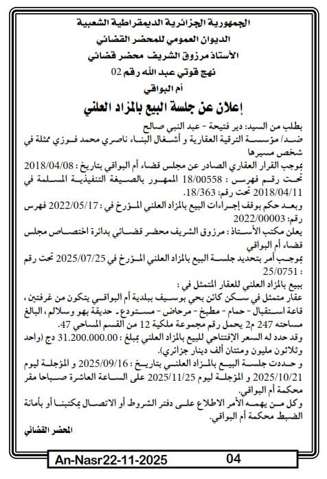 | Paru dans le journal : النصر | |