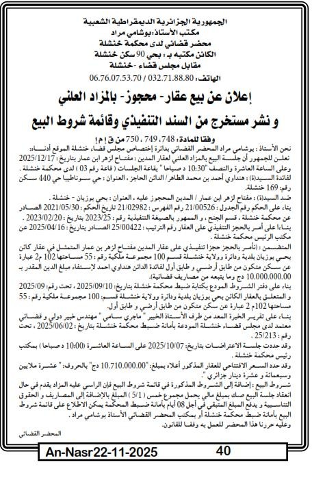 Il sera procédé à la vente au plus offrant et dernier enchérisseur le :