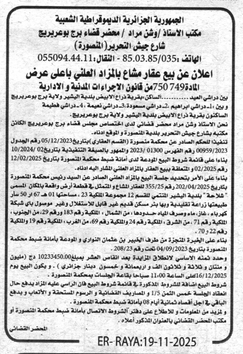 Il sera procédé à la vente au plus offrant et dernier enchérisseur le :