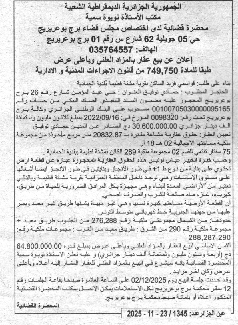 Il sera procédé à la vente au plus offrant et dernier enchérisseur le :