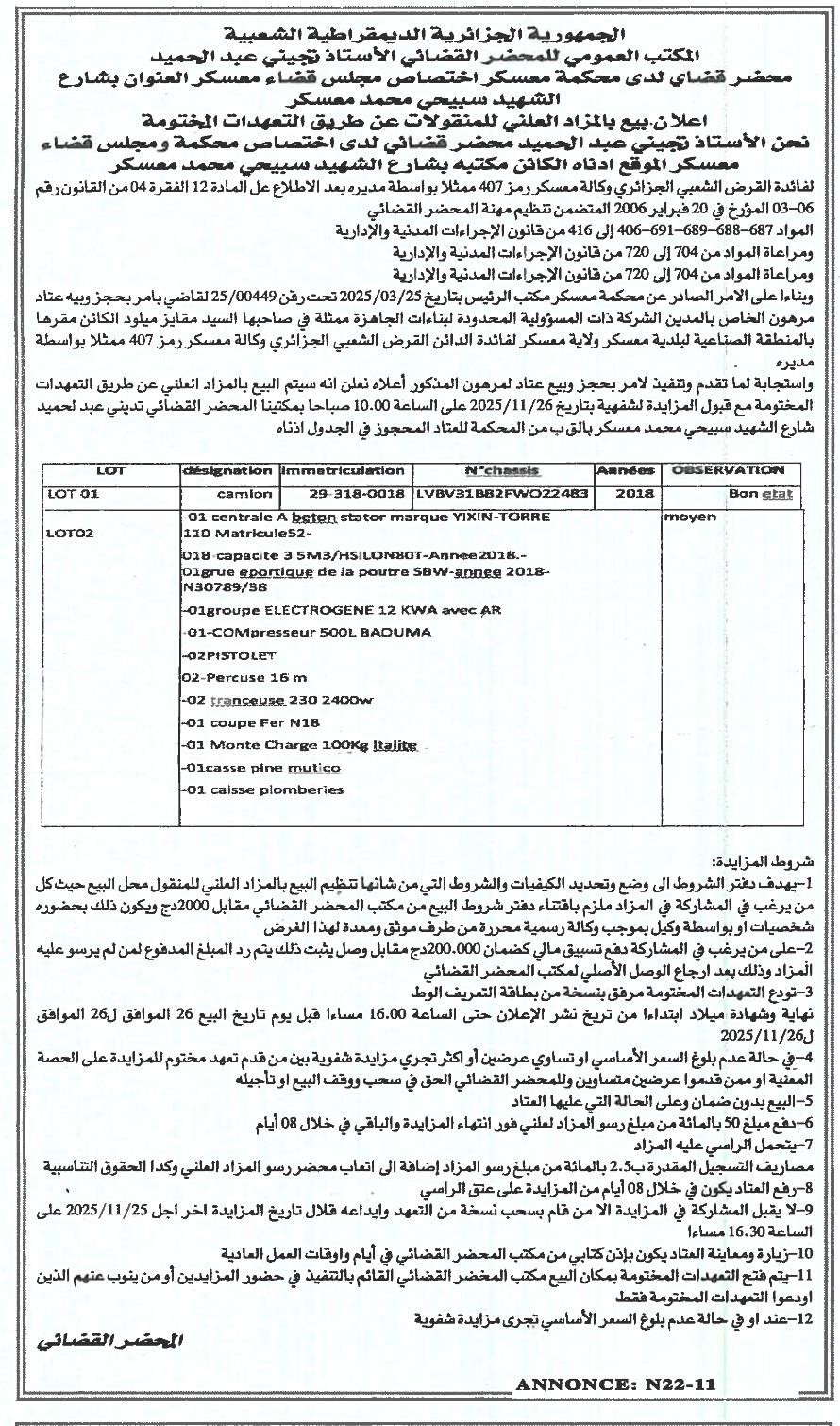 Il sera procédé à la vente au plus offrant et dernier enchérisseur le :