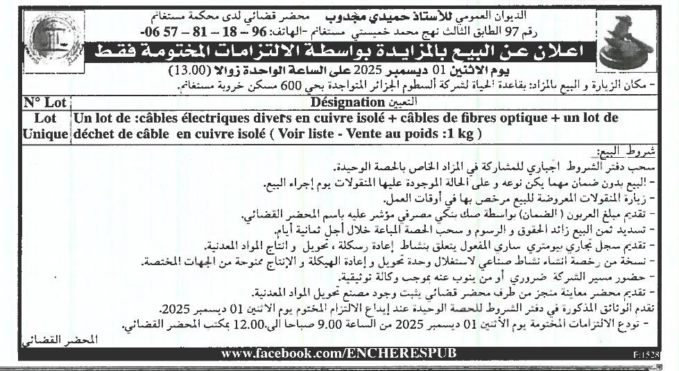 Il sera procédé à la vente au plus offrant et dernier enchérisseur le :