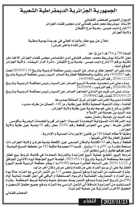 Il sera procédé à la vente au plus offrant et dernier enchérisseur le :