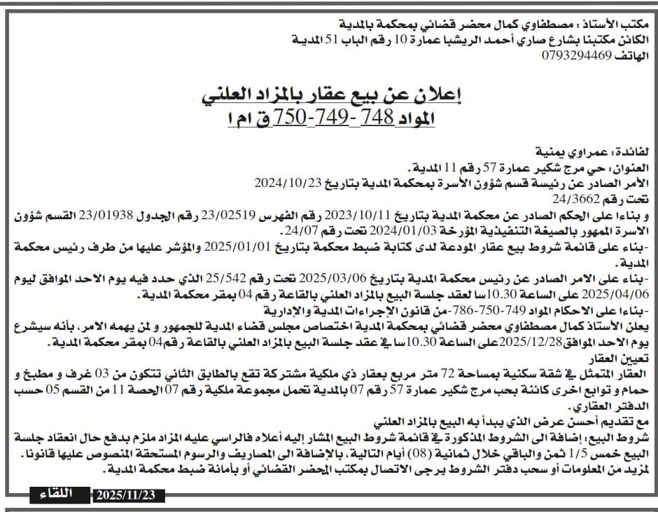 Il sera procédé à la vente au plus offrant et dernier enchérisseur le :