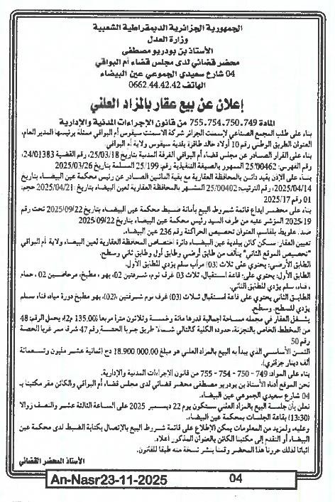 Il sera procédé à la vente au plus offrant et dernier enchérisseur le :