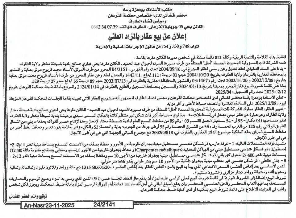 Il sera procédé à la vente au plus offrant et dernier enchérisseur le :