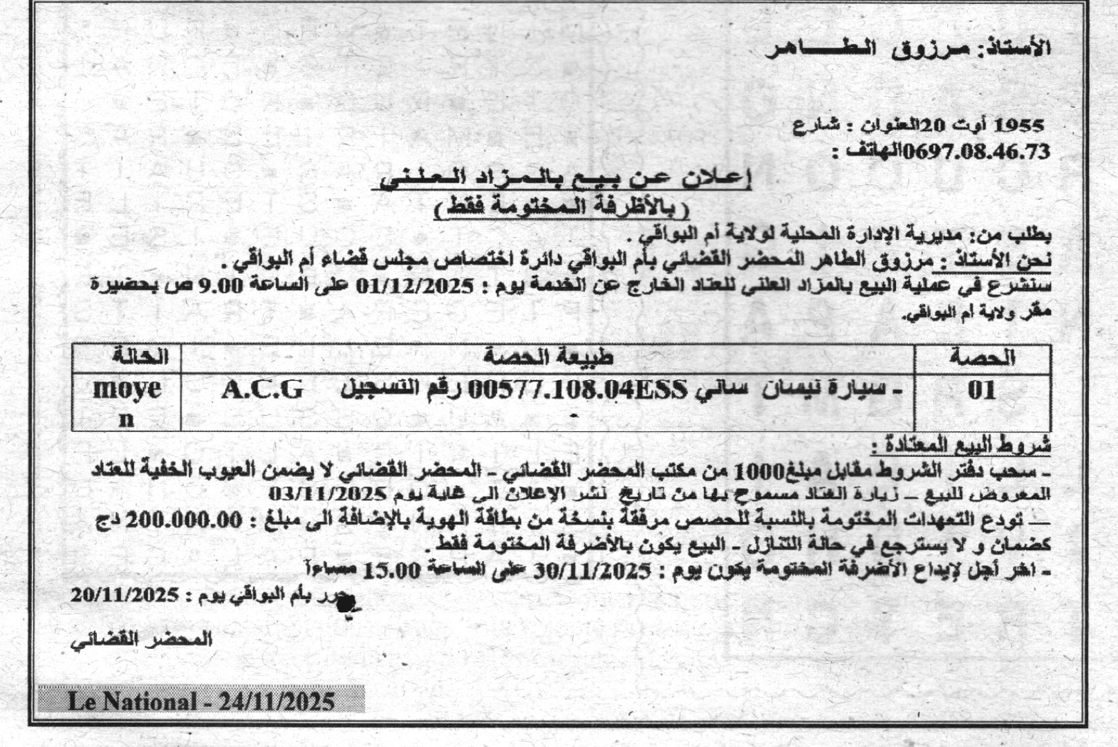 Il sera procédé à la vente au plus offrant et dernier enchérisseur le :