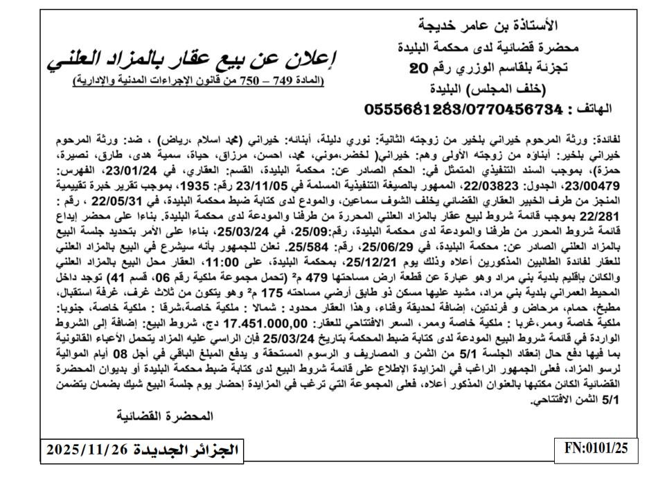 Il sera procédé à la vente au plus offrant et dernier enchérisseur le :