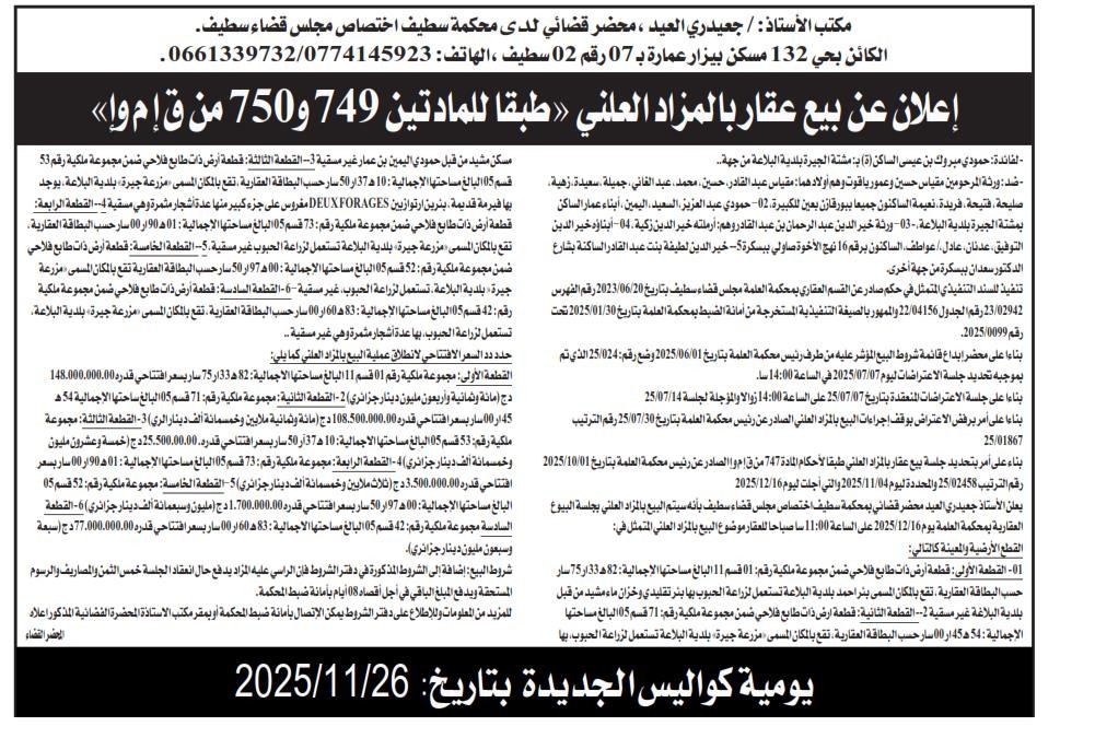 Il sera procédé à la vente au plus offrant et dernier enchérisseur le :