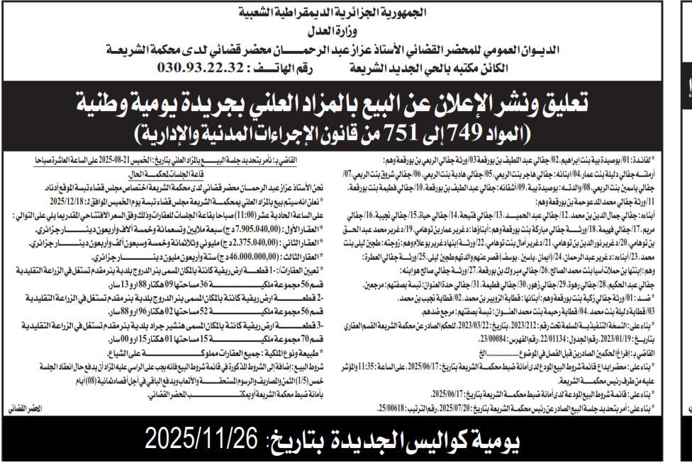 Il sera procédé à la vente au plus offrant et dernier enchérisseur le :