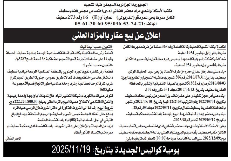 Il sera procédé à la vente au plus offrant et dernier enchérisseur le :