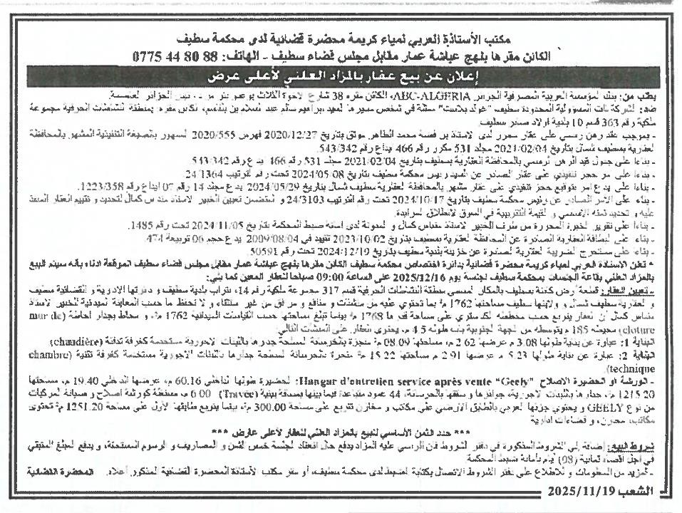 Il sera procédé à la vente au plus offrant et dernier enchérisseur le :