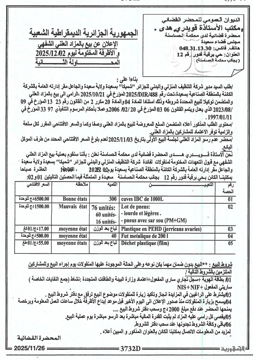 | (*) LA DATE EST DONNÉE À TITRE INDICATIF, VEUILLEZ LA VÉRIFIER LORS DU RETRAIT DU CAHIER DES CHARGES OU AUPRÈS DE L\'ÉMETTEUR | |