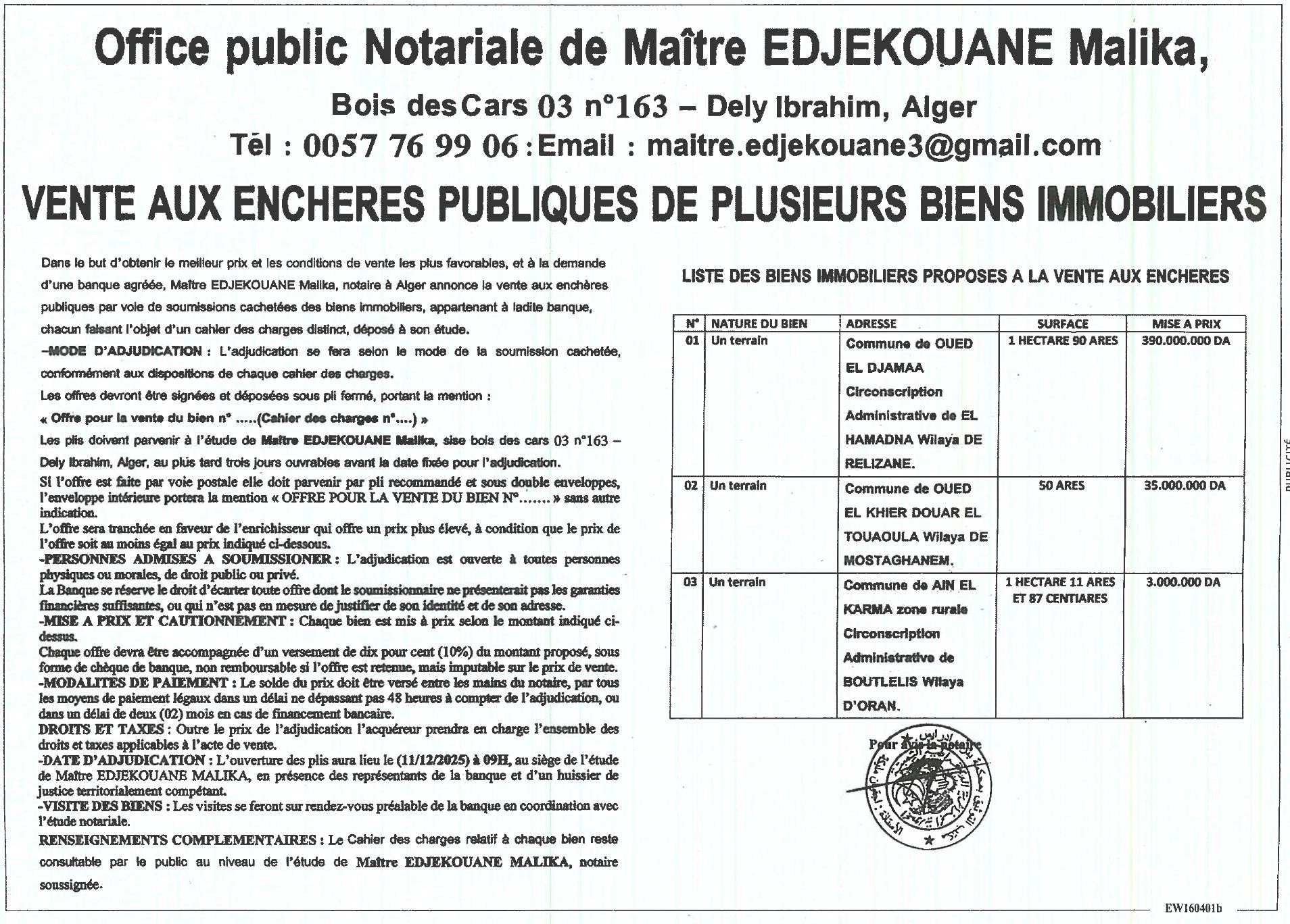 Il sera procédé à la vente au plus offrant et dernier enchérisseur le :