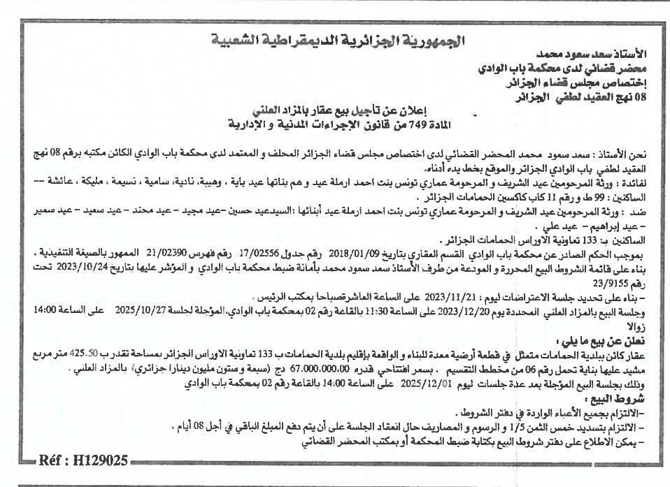 Il sera procédé à la vente au plus offrant et dernier enchérisseur le :