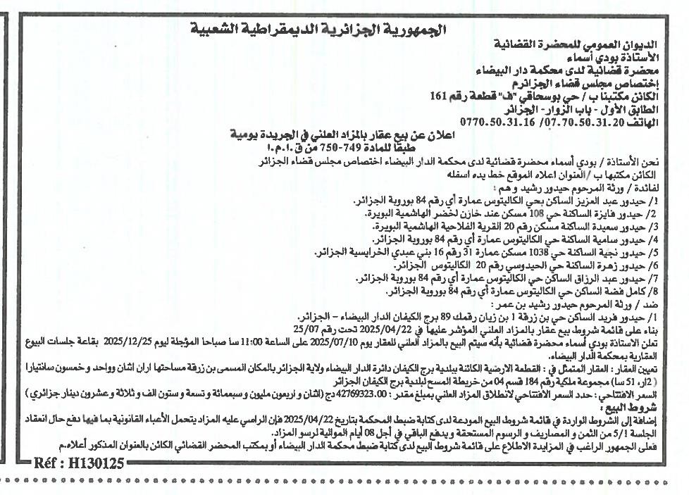 Il sera procédé à la vente au plus offrant et dernier enchérisseur le :