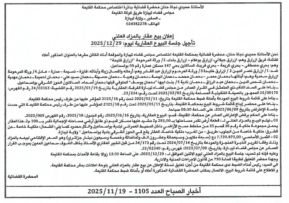 | Paru dans le journal : اخبار الصباح | |