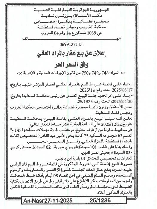 Il sera procédé à la vente au plus offrant et dernier enchérisseur le :