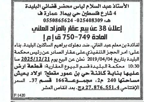 Il sera procédé à la vente au plus offrant et dernier enchérisseur le :