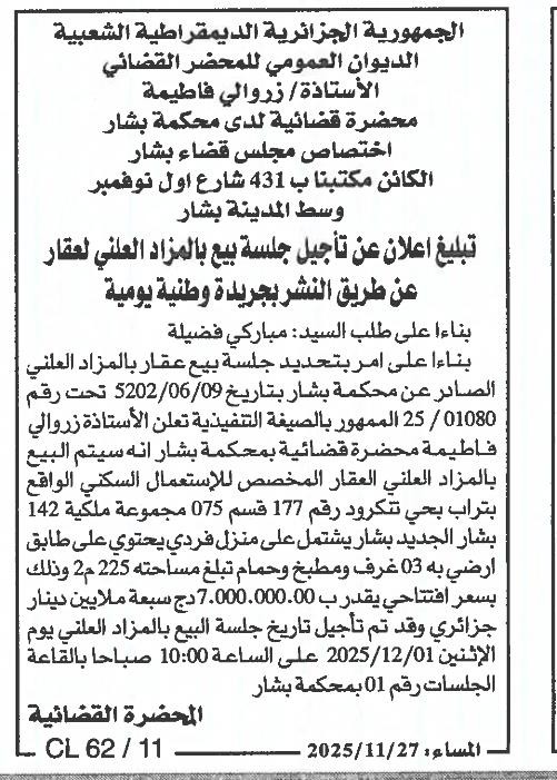 Il sera procédé à la vente au plus offrant et dernier enchérisseur le :