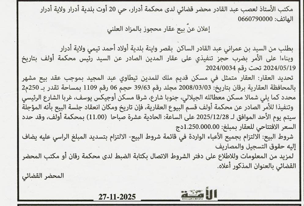 Il sera procédé à la vente au plus offrant et dernier enchérisseur le :