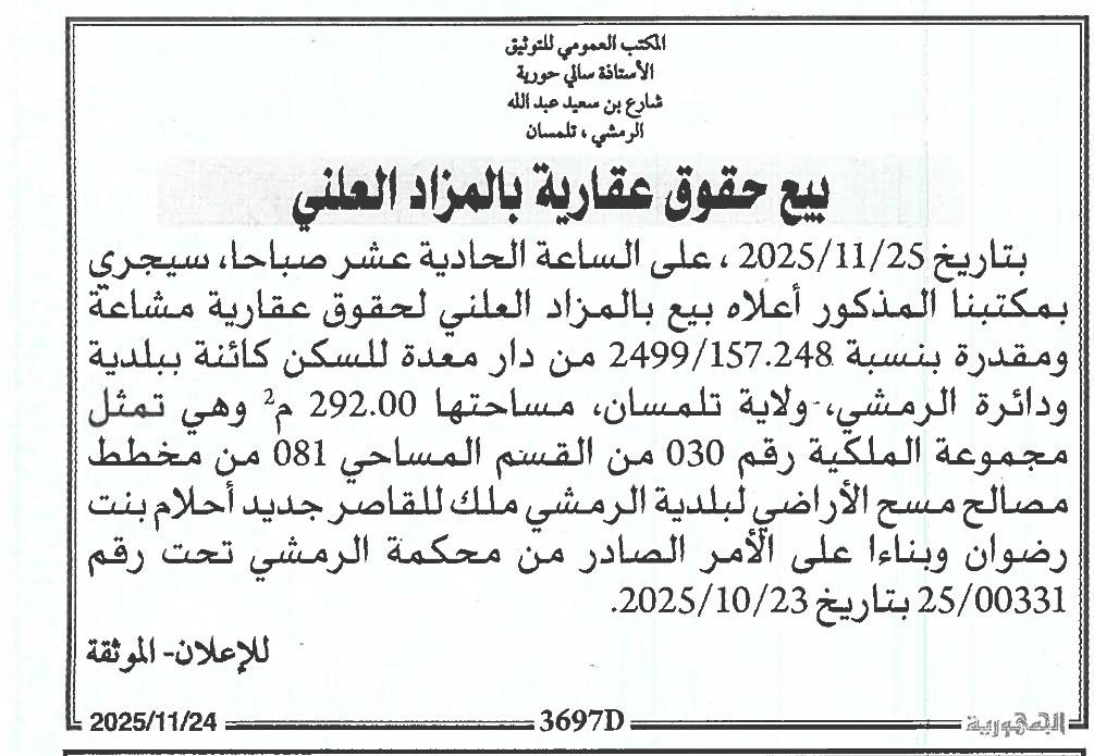 Il sera procédé à la vente au plus offrant et dernier enchérisseur le :