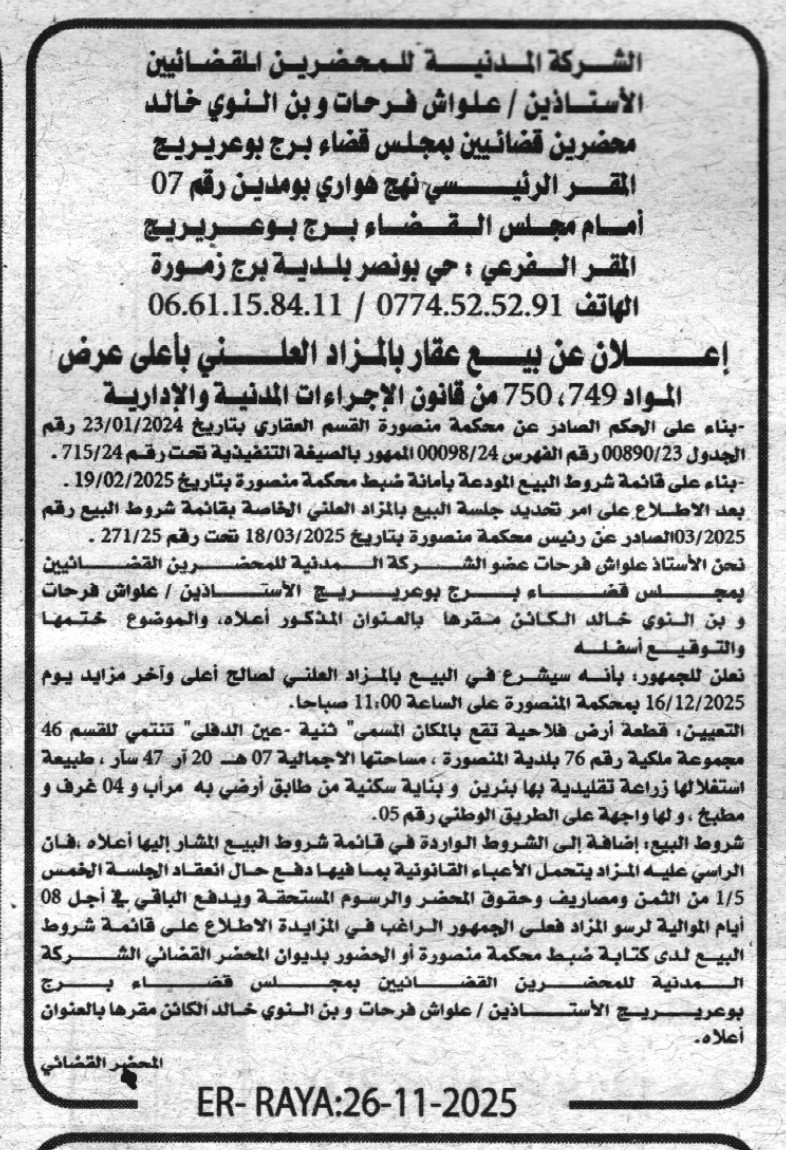 Il sera procédé à la vente au plus offrant et dernier enchérisseur le :