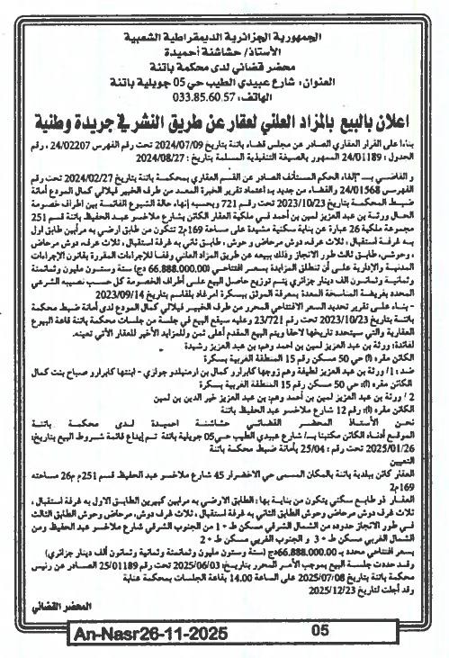 Il sera procédé à la vente au plus offrant et dernier enchérisseur le :