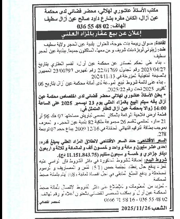 Il sera procédé à la vente au plus offrant et dernier enchérisseur le :