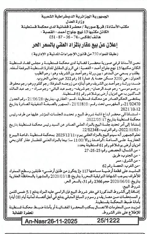 | Paru dans le journal : النصر | |