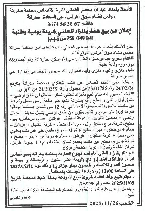 Il sera procédé à la vente au plus offrant et dernier enchérisseur le :