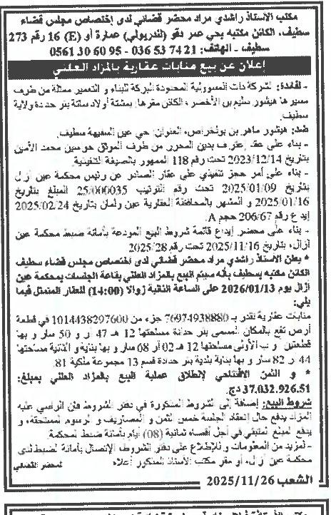 Il sera procédé à la vente au plus offrant et dernier enchérisseur le :