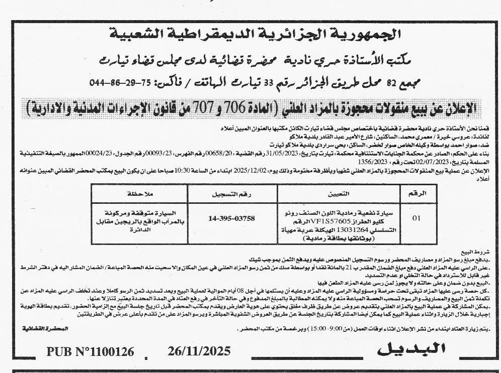 Il sera procédé à la vente au plus offrant et dernier enchérisseur le :