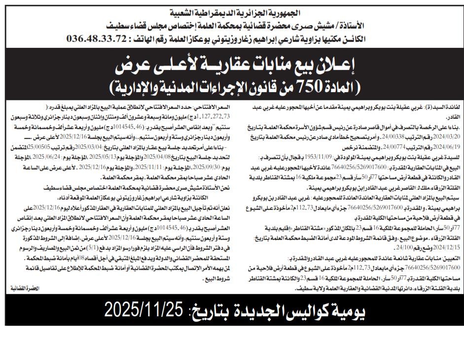 Il sera procédé à la vente au plus offrant et dernier enchérisseur le :