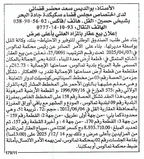 Il sera procédé à la vente au plus offrant et dernier enchérisseur le :