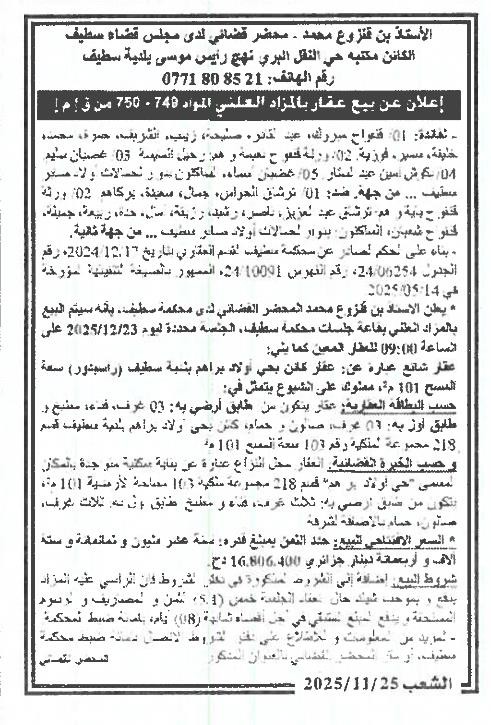 Il sera procédé à la vente au plus offrant et dernier enchérisseur le :